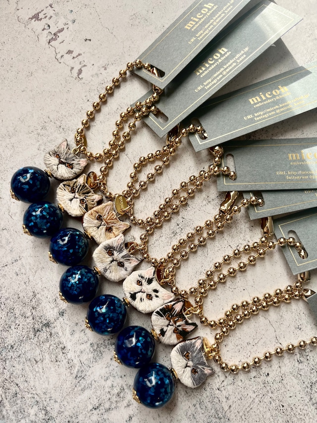 手刺繍で作った猫の顔と、グリッターが美しい海外製のヴィンテージ ビーズを組み合わせたオリジナルチャームです。 ご購入前に商品画像を全てご確認くださいませ。 真鍮チェーンの長さ13.8センチ前後(コネクター含まず) 刺繍裏地:革 アクリルビーズ、真鍮 不良品の場合5日以内にご連絡くださいませ。 ご入金より2〜4営業日で発送いたします。 (土日祝日をのぞく)