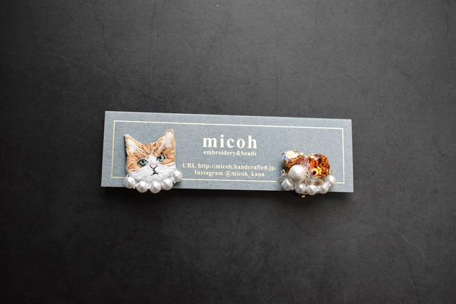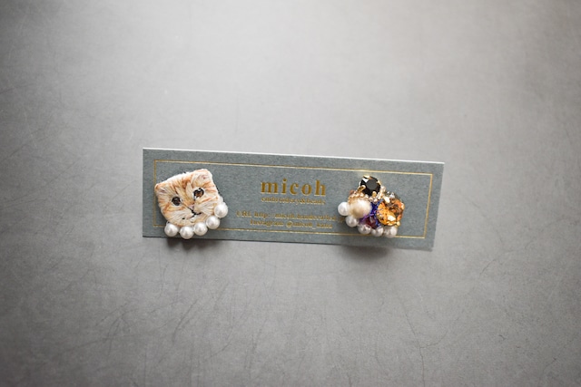 (ピアスのみ)キャット&ビジュー サビ猫