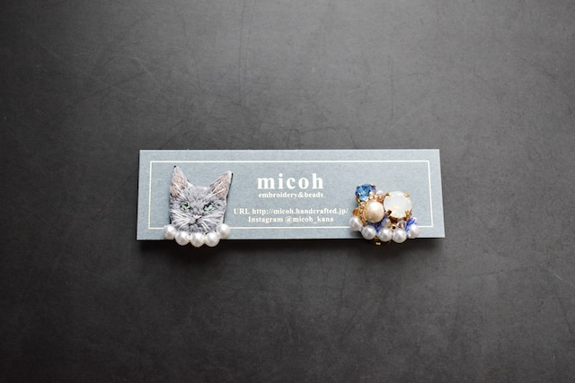 手刺繍で作った猫モチーフとビジューの、左右デザイン違いオリジナルピアスです。 下向き防止キャッチを採用しています。 ※イヤリングに変更できません。 イヤリングとしてご利用希望の方は、イヤリングコンバーターを合わせてご購入ください。 ご購入前に商品画像を全てご確認くださいませ。 裏地:革 スワロフスキー製クリスタルストーン、樹脂パール、アクリルビーズ他 パールラインと、ビジューのパーツ間はレジンで補強しています。力を加えるとレジンが剥がれますのでお取り扱いにはお気をつけください。 ※ハンドメイドにご理解のある方のみご購入ください。 お使いの液晶画面環境・光の加減によって、色味が違って見える場合がございます。 埃が付着しやすいので、使用後は箱などにしまってください。 直射日光や高温にご注意ください。 水に濡らさないでください。 不良品の場合5日以内にご連絡くださいませ。 ご入金より2〜4営業日で発送いたします。 (土日祝日をのぞく)