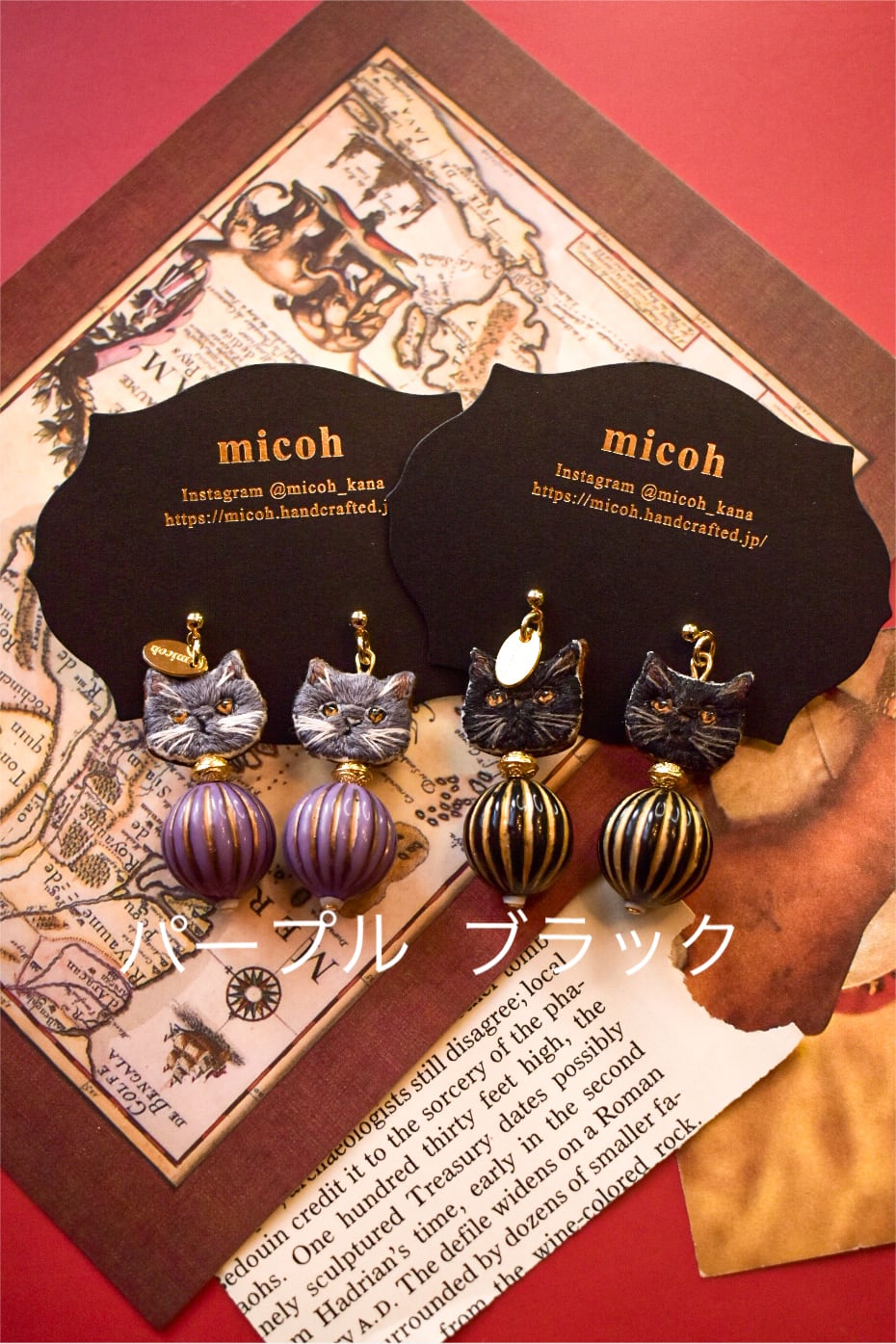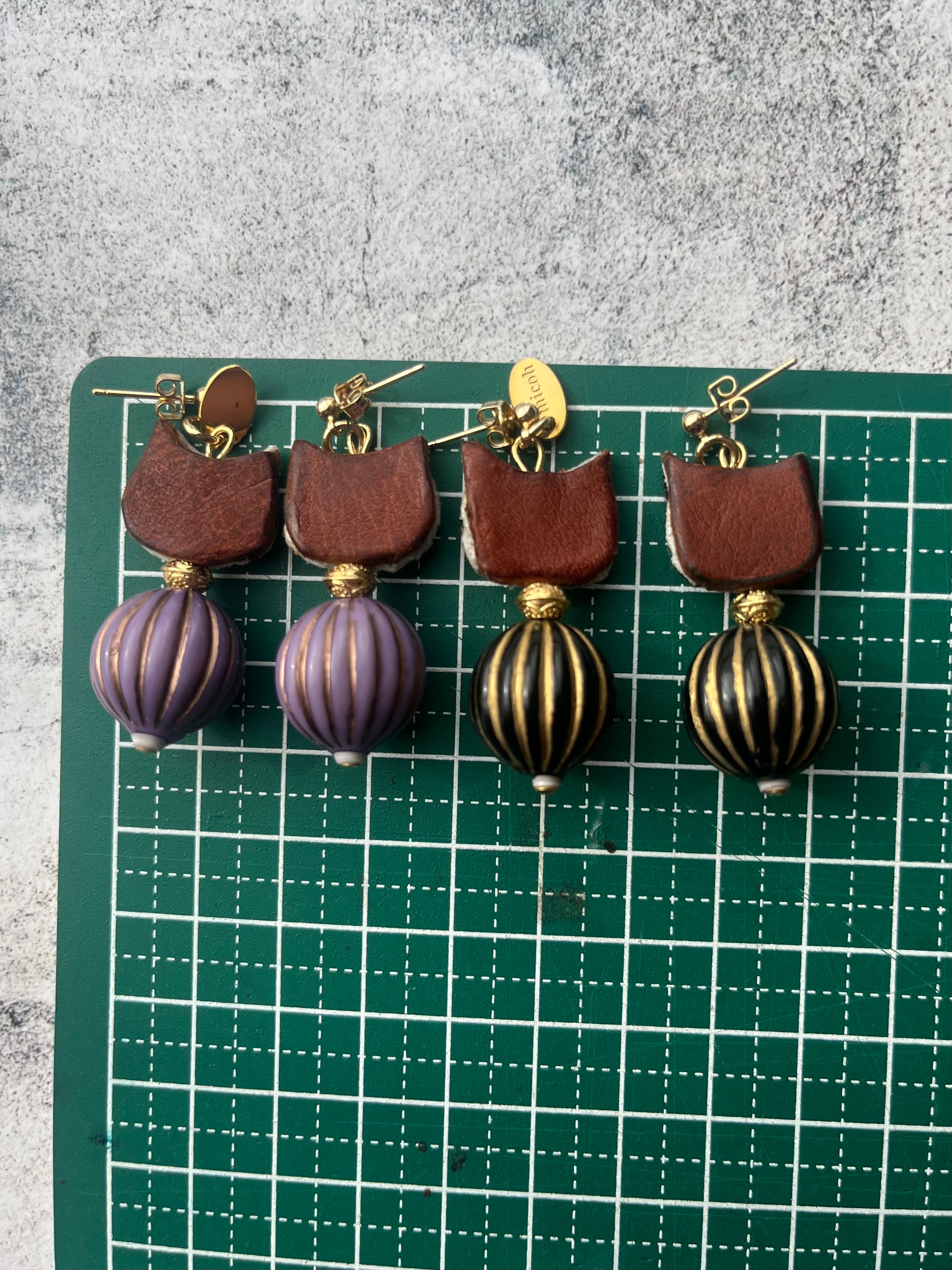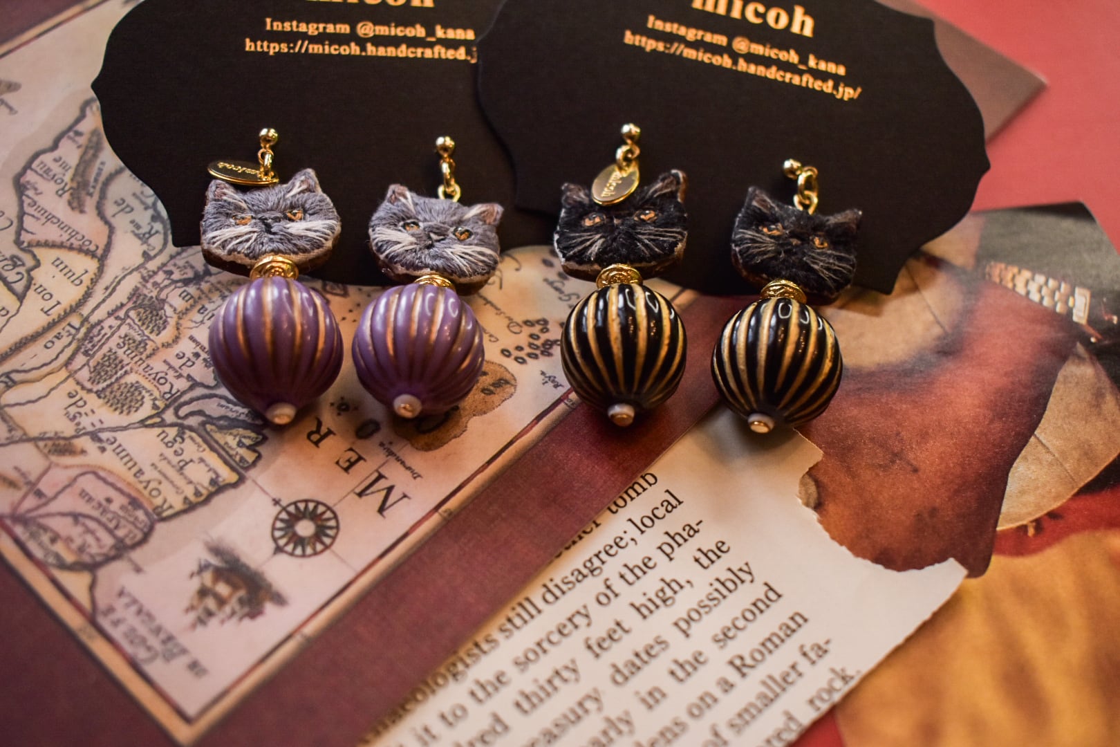 手刺繍のキャットフェイスとヴィンテージビーズを組み合わせました。