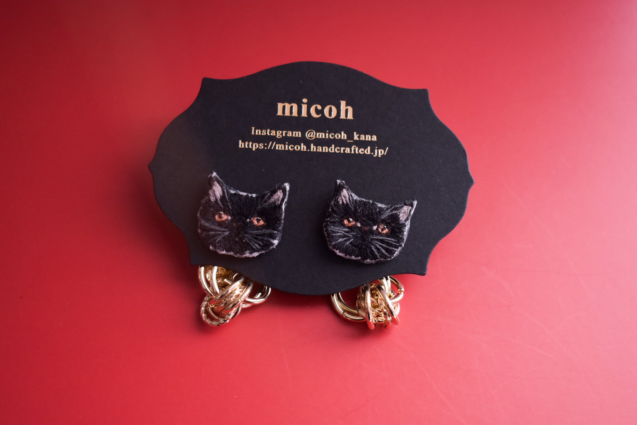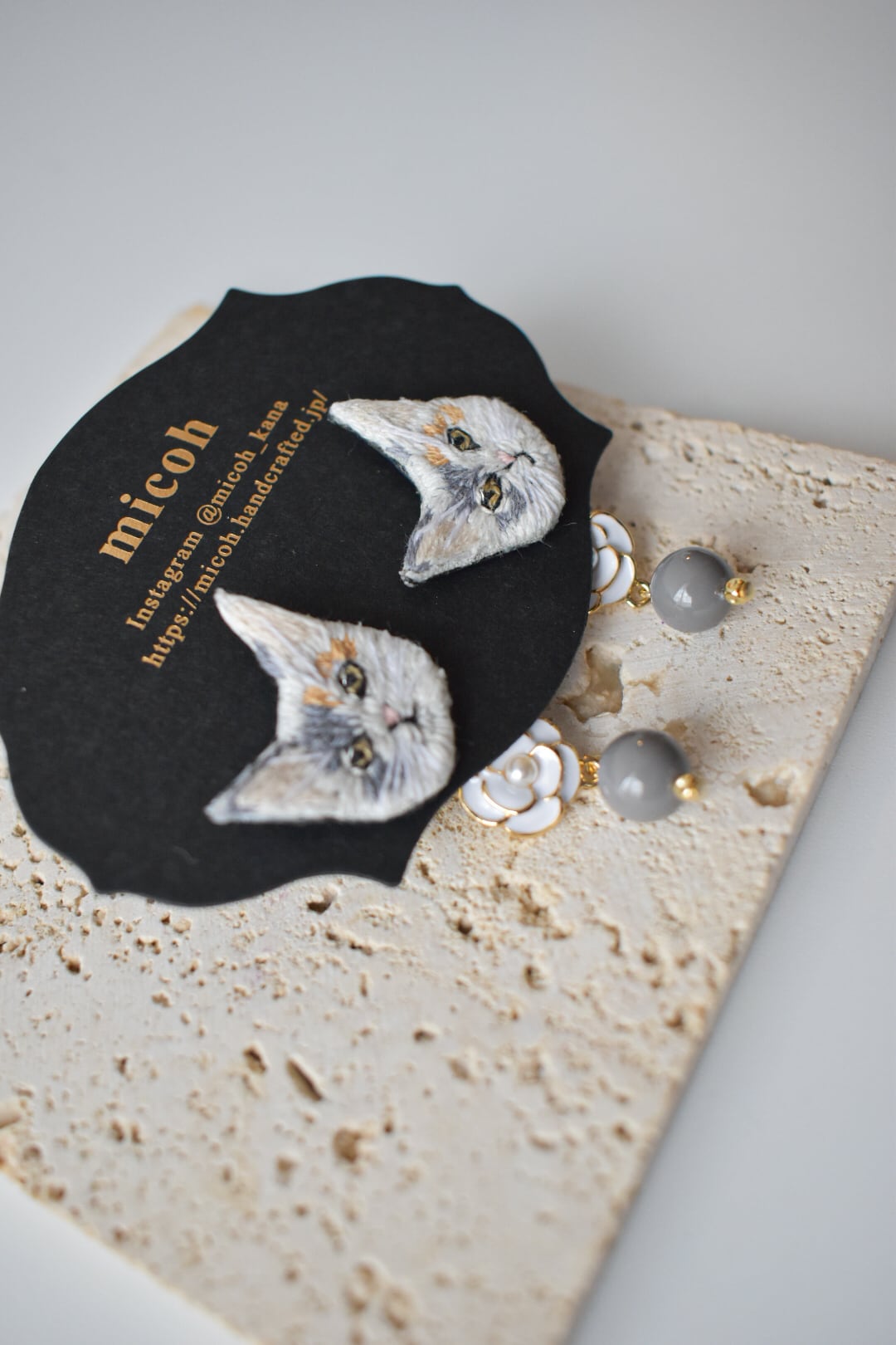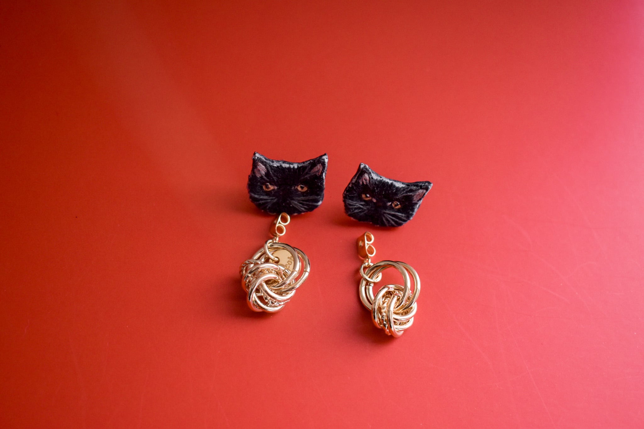 ⭐︎キャッチを変えればシンプルなねこ刺繍ピアスとしてもお楽しみいただけます。