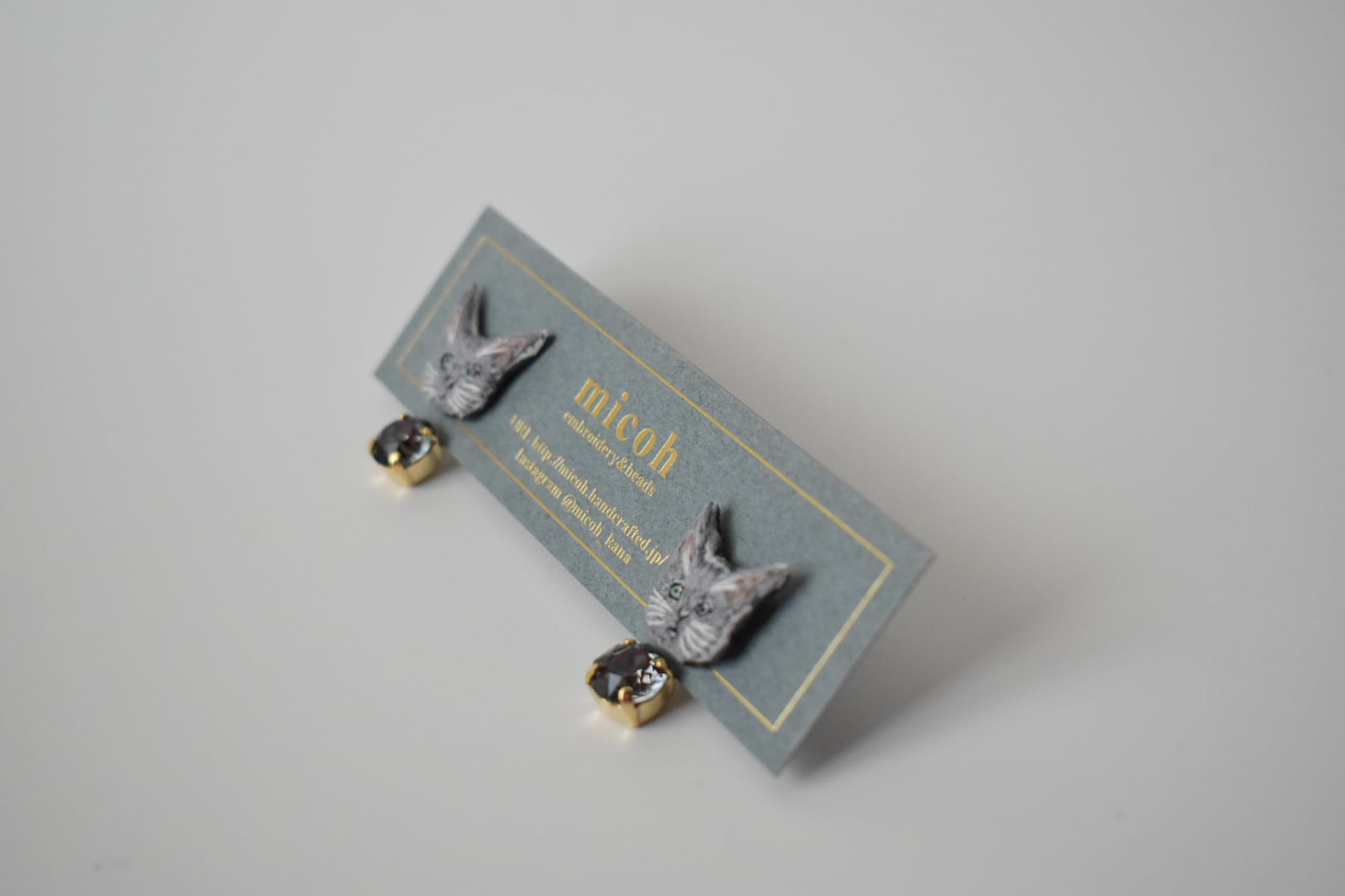 (ピアスのみ)クリスタルドロップ ミニキャットピアス ロシアンブルー