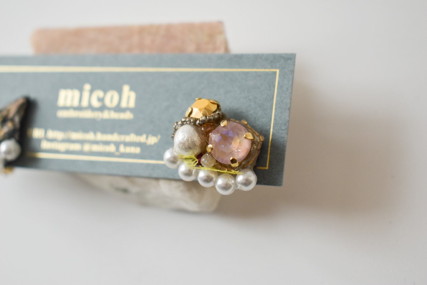 パールラインと、ビジューのパーツ間はレジンで補強しています。力を加えるとレジンが剥がれますのでお取り扱いにはお気をつけください。